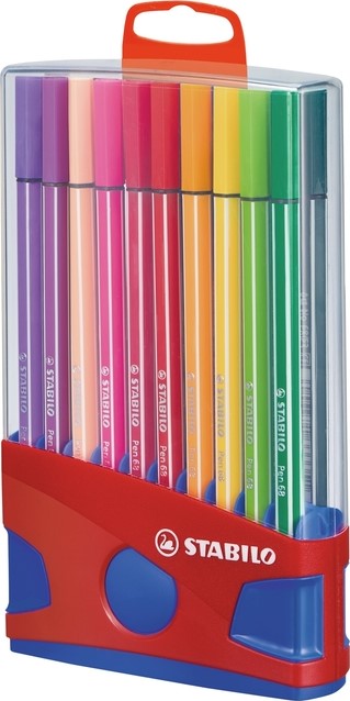 De premium viltstift STABILO Pen 68 in een etui à 20 kleuren