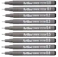 Fineliner Artline technisch etui met 0.1-0.3-0.5-0.7mm zwart