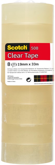 Plakband Scotch 508 19mmx66m transparant 8 rollen