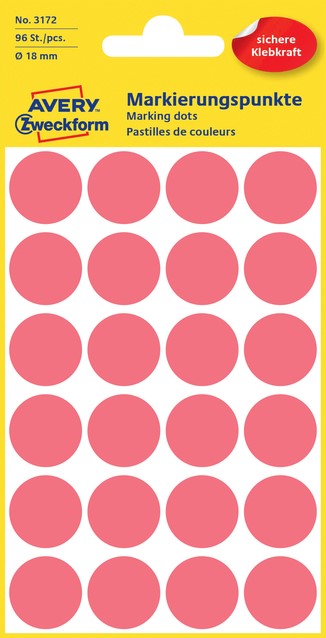 Etiket Avery 3004 rond 18mm rood 96 stuks