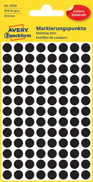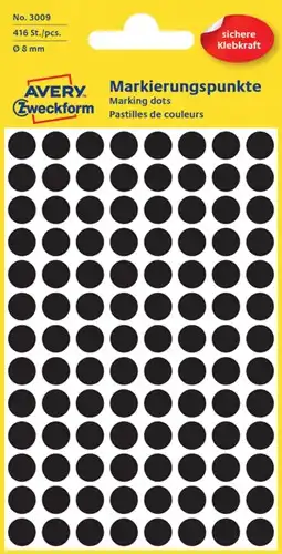 Etiket Avery 3090 rond 8mm assorti 416 stuks