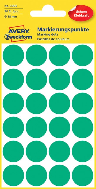 Etiket Avery 3174 rond 18mm lichtgroen 96 stuks