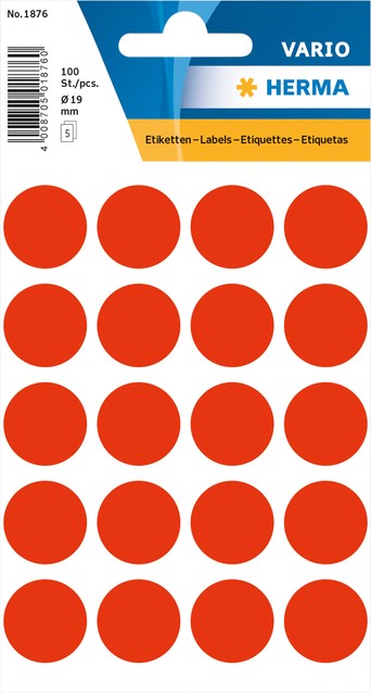 Etiket HERMA 2256 rond 19mm fluor rood 960 stuks