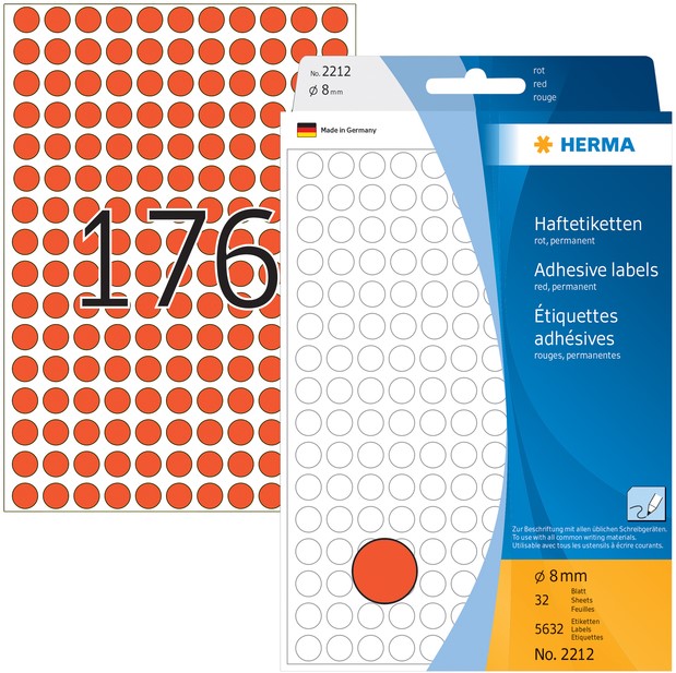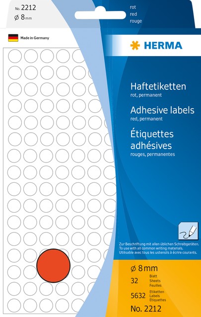 Etiket HERMA 2212 rond 8mm rood 5632 stuks