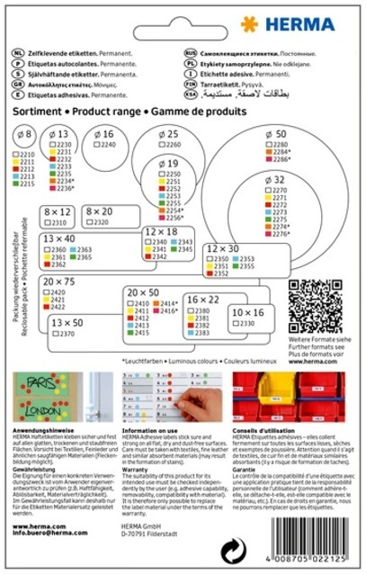 Etiket HERMA 2210 rond 8mm wit 5632 stuks