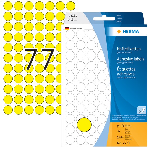 Etiket HERMA 2231 rond 13mm geel 2464 stuks