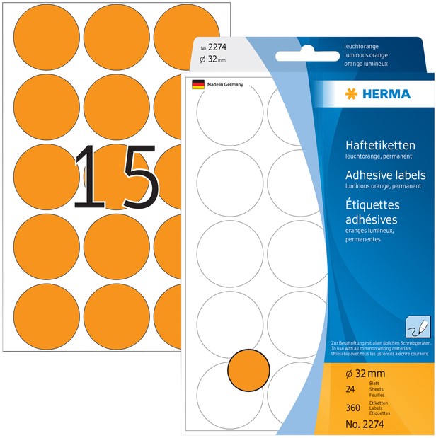 Etiket HERMA 2274 rond 32mm fluor oranje 360 stuks