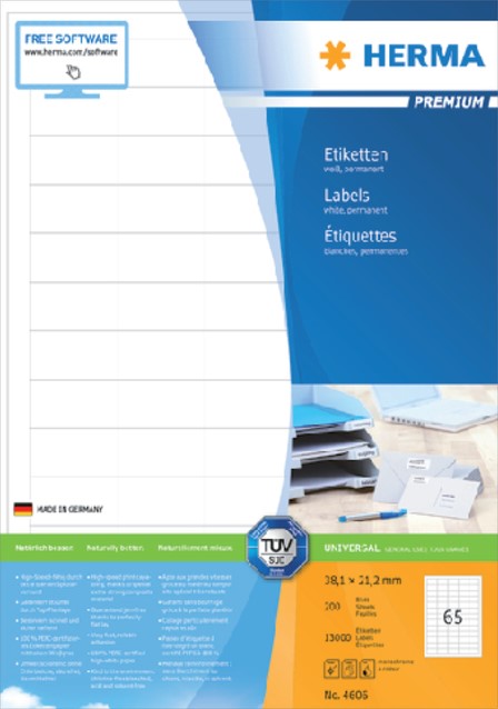 Etiket HERMA 4254 38.1x21.2mm premium wit 6500 stuks
