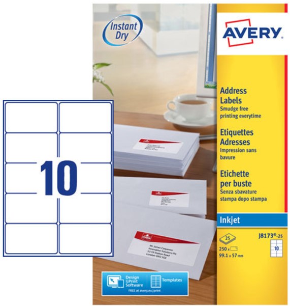 Etiket Avery J8169-25 99.1x139mm wit 100 stuks