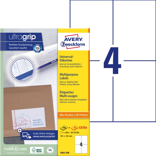 Etiket Avery 3483 105x148mm A6 wit 400 stuks