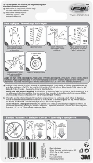 De Command™ Middelgrote transparante haken met transparante strips zijn onze innovatieve oplossing voor het veilig en zonder beschadiging ophangen van accessoires, seizoensversieringen, schoonmaakmiddelen en andere voorwerpen met een middelzwaar gewicht. Ze hechten sterk en laten na verwijdering geen sporen achter dankzij de 3M rekontgrendelingstechnologie.