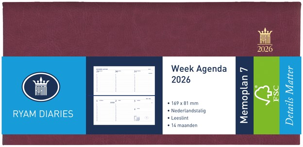 Agenda 2026 Ryam Memoplan 7 Suprema 7dagen/2pagina's landscape bordeaux