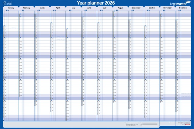 Het gebruik van een jaarplanner is een praktische en visueel aantrekkelijke manier om je planning, evenementen en taken voor het jaar te organiseren. Hang op een zichtbare plek: Zoek een prominente plek in je huis of kantoor. Gebruik verschillende kleuren markers of stiften om belangrijke data zoals afspraken en deadlines te markeren. Algemene feestdagen zijn voorbedrukt. Gelamineerde Engelstalige jaarplanner persoon van 60x90cm. De laminering beschermt het karton tegen slijtage en maakt de planner duurzamer en zorgt voor een langere levensduur. Op het gladde, beschrijfbare oppervlak van het gelamineerde karton kun je eenvoudig schrijven en wissen bij gebruik van droog uitwisbare markers. Markeringen kunnen eenvoudig worden gewist met een vochtige doek of een gum. Jaarplanner met de maanden aan de bovenkant en de dagen langs de zijkant (alleen de eerste letter). Verticale jaarplanner in liggende opmaak. Drie extra kolommen voor elke maand; ondersteunt het aangeven van prioriteiten. Weekends zijn in een andere kleur gemarkeerd. Extra ruimte voor aantekeningen aan de rechterkant van de planner. Weeknummers zijn in het design opgenomen. Afmeting raster ongeveer: H14 x B46mm. Deze jaarplanner is gemaakt van materiaal uit goed beheerde, FSC®-gecertificeerde bossen en andere gecontroleerde bronnen (FSC C158462).