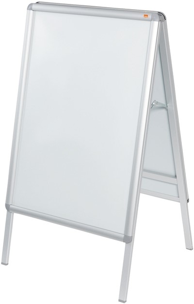 Vrijstaand, dubbelzijdig stoepbord voor de veilige presentatie van posters, mededelingen en informatie. De handige aluminium clicklijst zorgt voor een professionele afwerking en maakt het mogelijk snel en eenvoudig de inhoud te wisselen.
