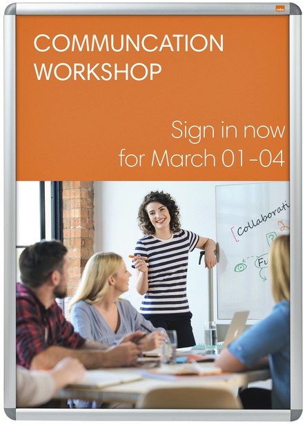Wandgemonteerd poster frame voor het veilig ophangen van posters, borden en informatie. De handige aluminium clicklijst zorgt voor een professionele afwerking en maakt het mogelijk snel en eenvoudig de inhoud te wisselen.