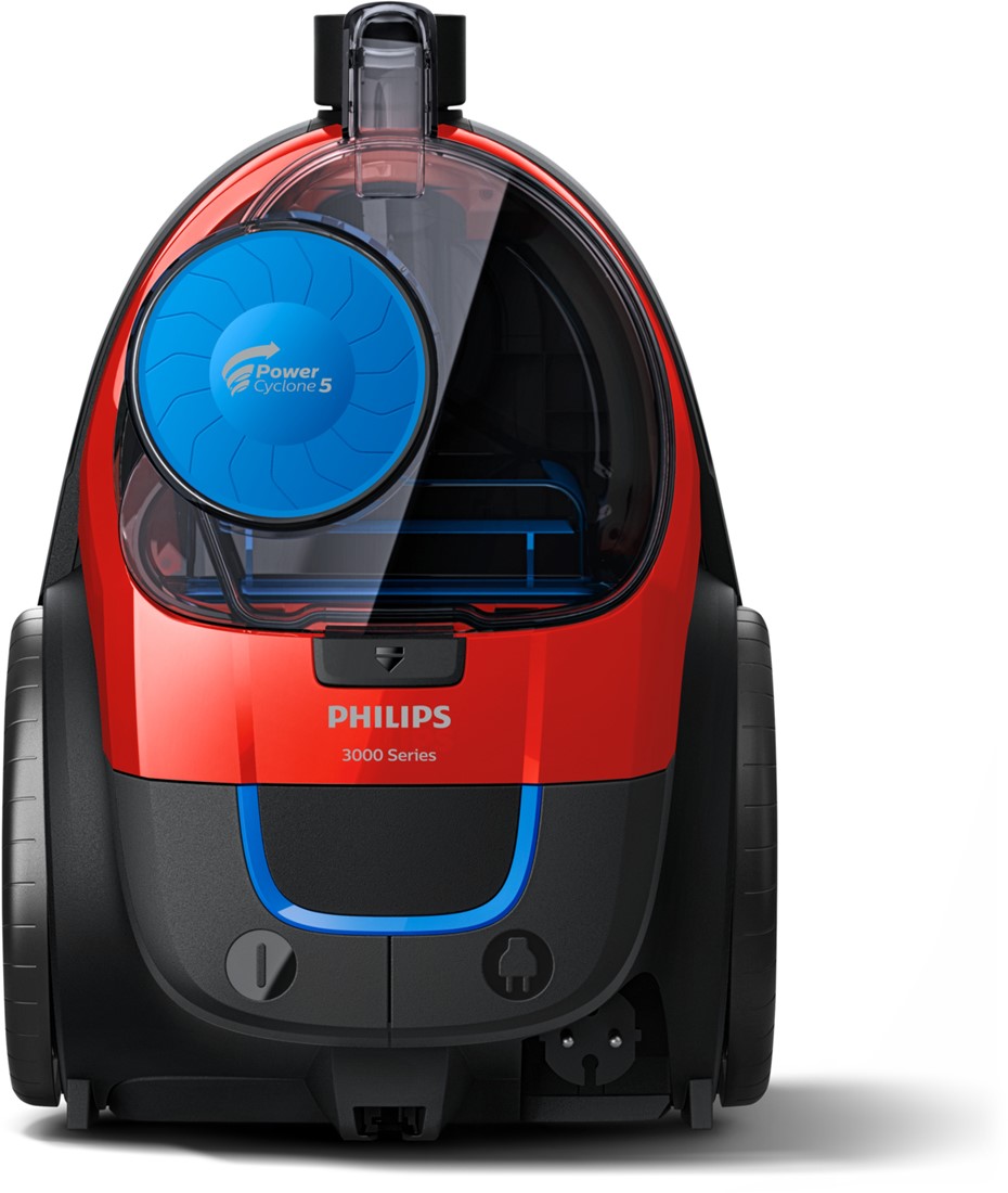De Philips stofzuiger zonder zak Series 3000 levert een continue hoge zuigkracht dankzij de PowerCyclone 5-technologie. De krachtige en efficiente 900W motor zorgt voor een stofopname van 99,9%[1]. De stofemmer is speciaal ontworpen om eenvoudig en hygiënisch met één hand te legen. Stofwolken zijn hierdoor verleden tijd. Het TriActive-mondstuk reinigt in 3 richtingen en is ontworpen voor een effectieve reiniging op harde en zachte vloeren. Gebruik de handige geïntegreerde borstel om eenvoudig meubilair en vlakke oppervlakken te verlossen van stof of vuil.
