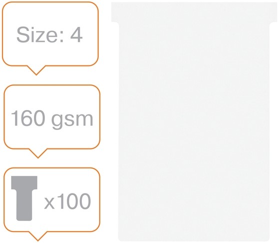 T-kaart Nobo nr.4 112mm wit 100 stuks