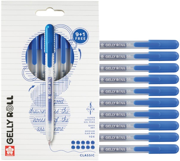 Gelschrijver Sakura Gelly Roll Classic 08 klikfunctie set à 10 stuks blauw