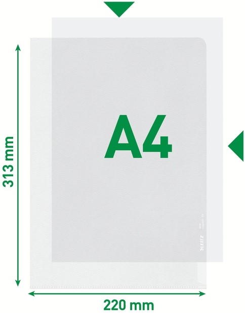 Stevig polypropyleen van 130 micron zorgt ervoor dat de zichtmap steeds opnieuw kan worden gebruikt.