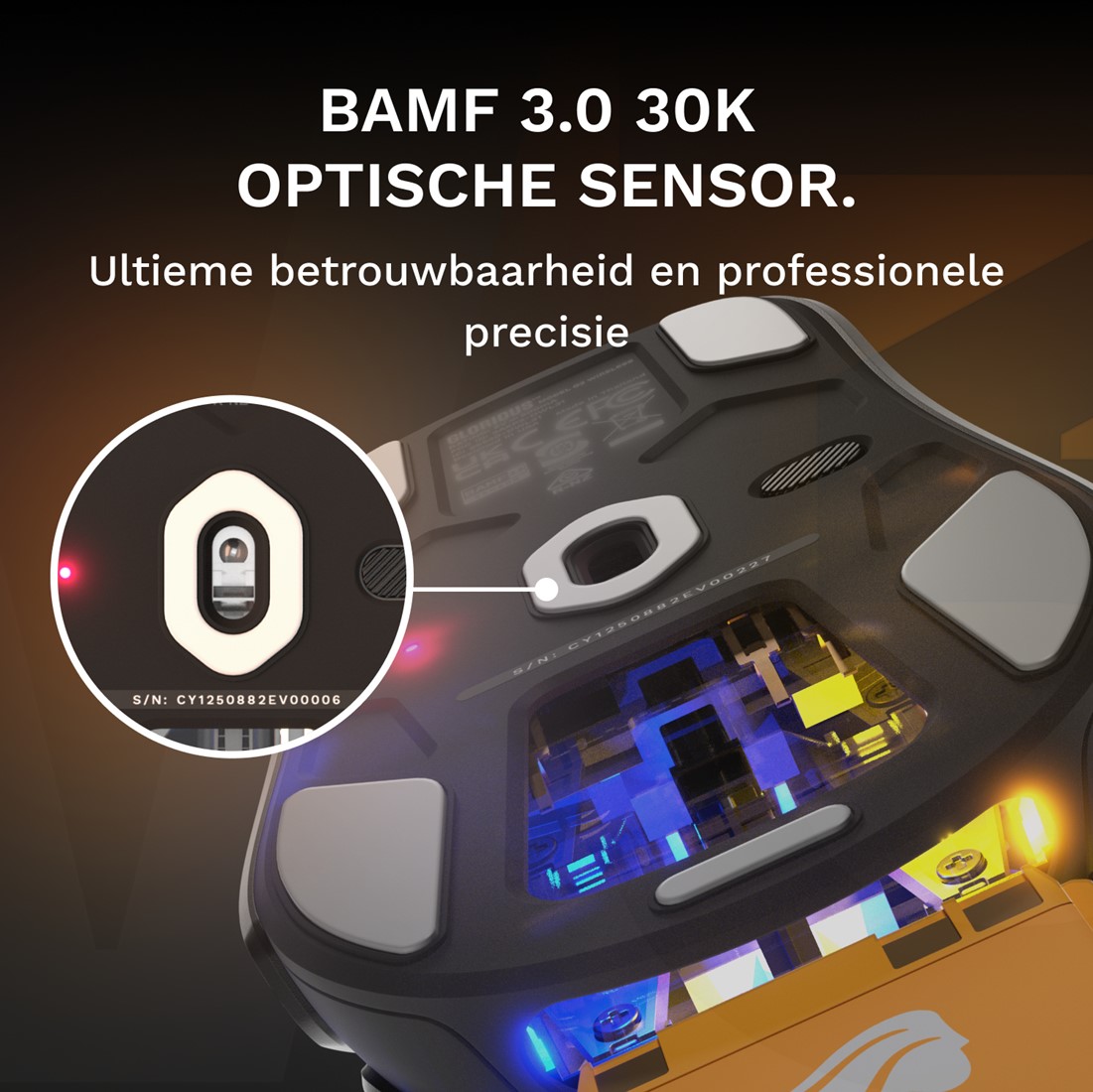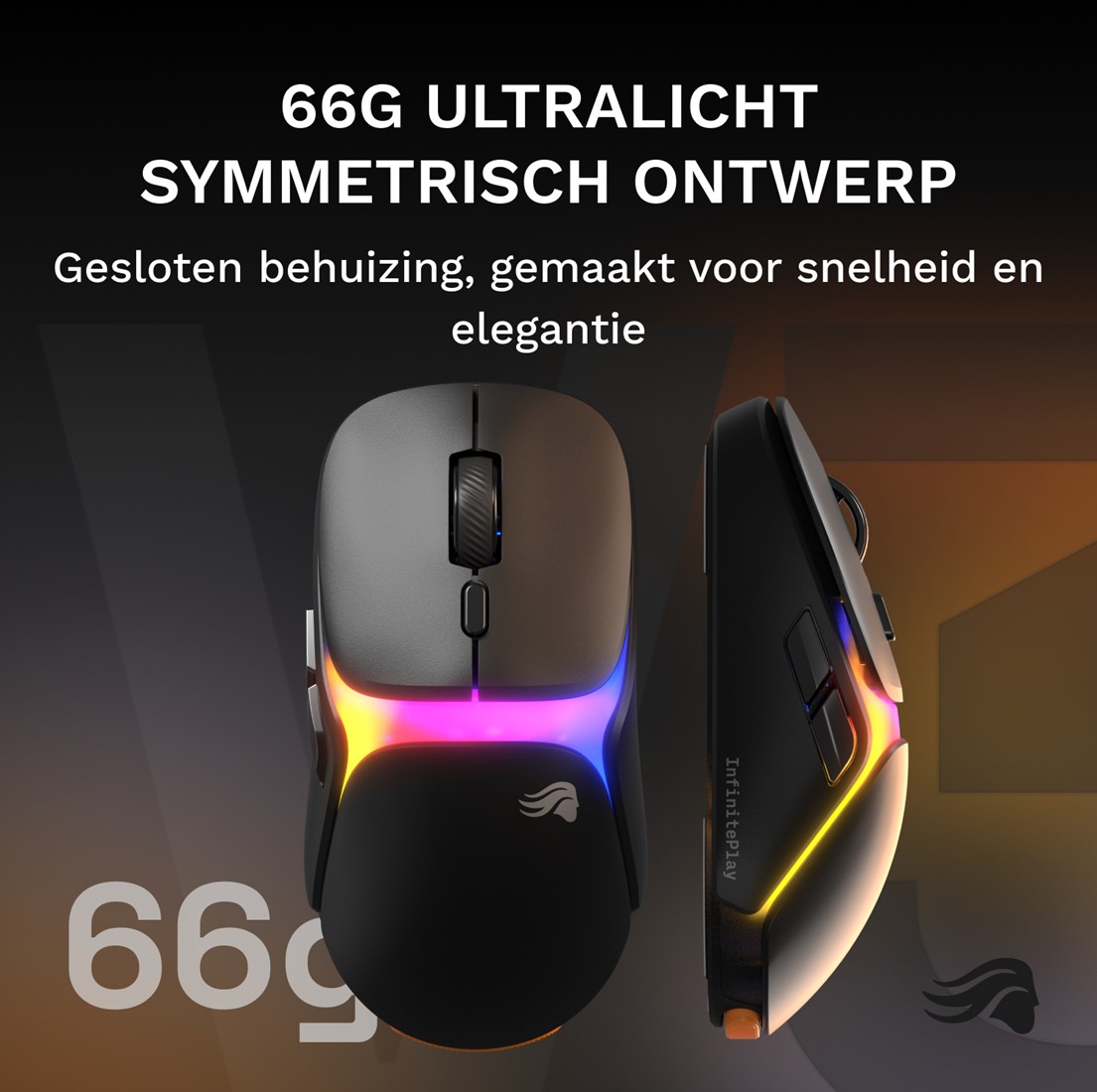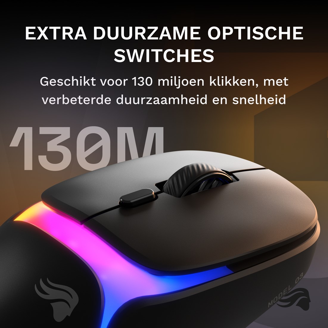 Met optische knoppen met een klikrate van 130M, 30K DPI-sensor in een ultralicht jasje van 66 gram.