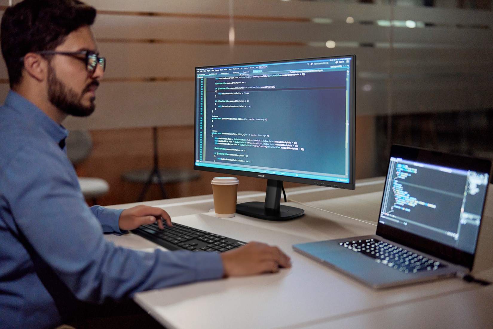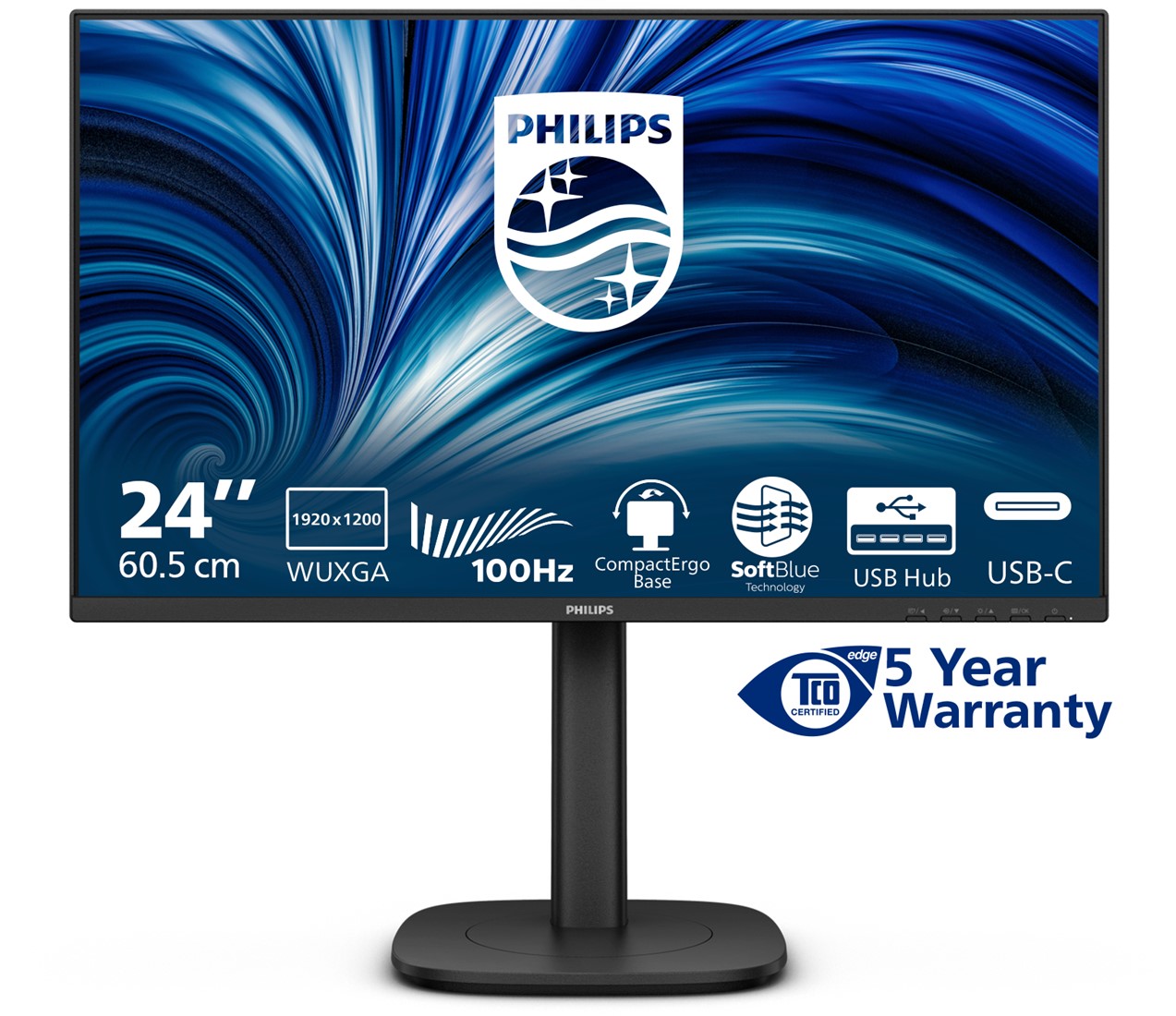 Deze 16:10 Philips WUXGA-monitor (1920x1200) heeft een IPS-paneel met een grote kijkhoek. De vernieuwingsfrequentie van 100 Hz zorgt voor vloeiende prestaties. De SoftBlue-technologieën verminderen vermoeide ogen, zodat u de hele dag productief kunt blijven.