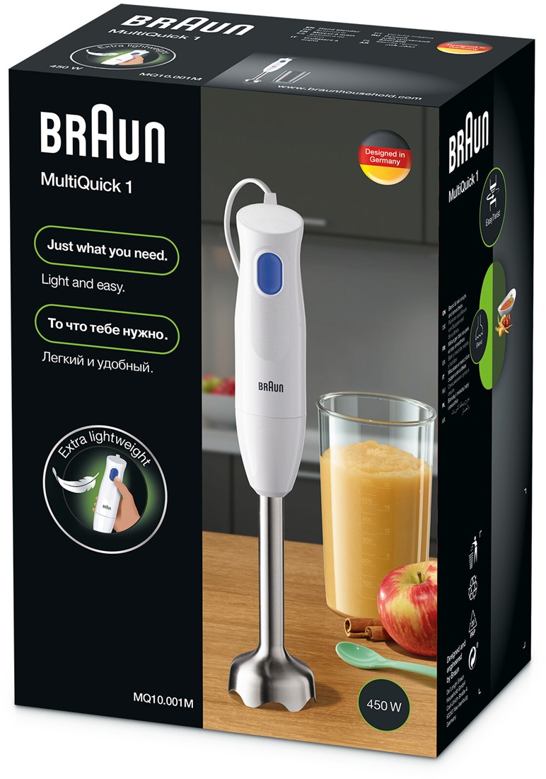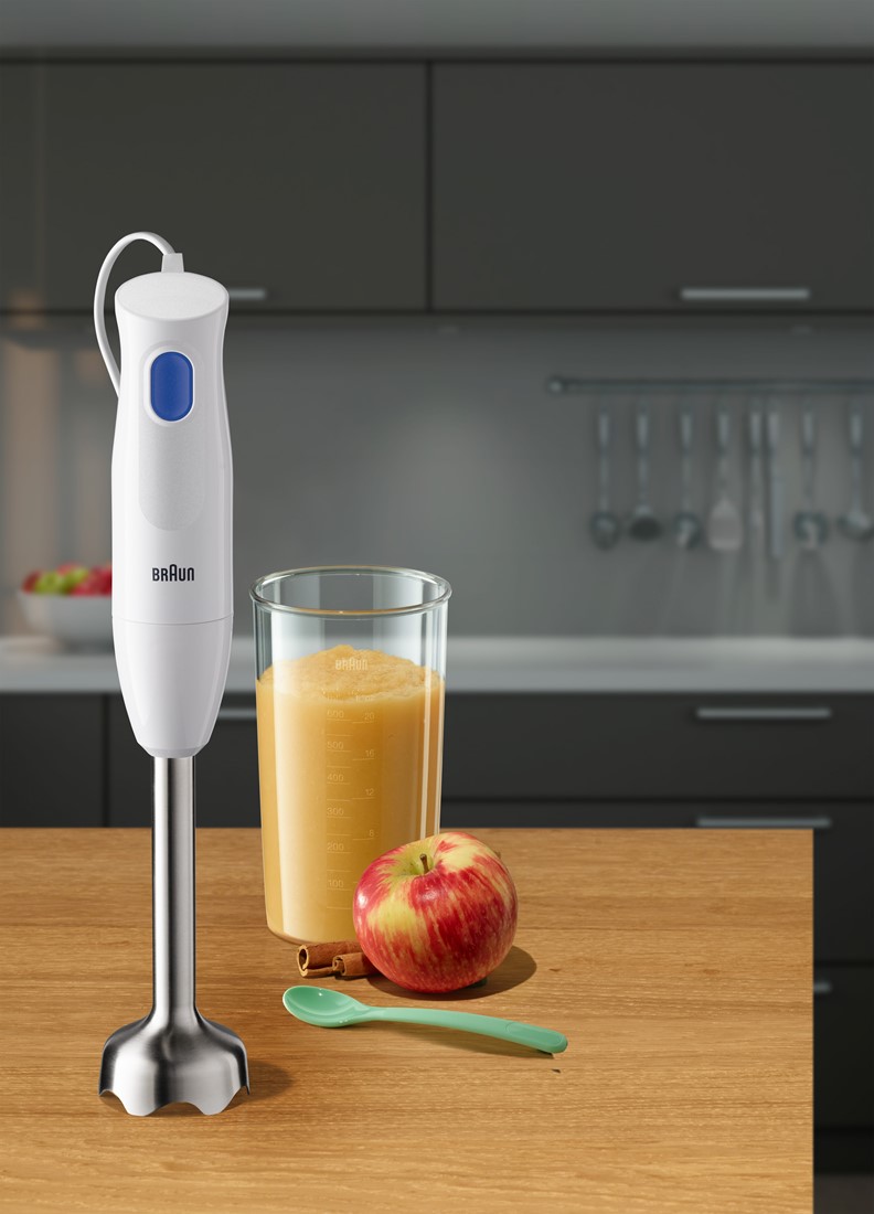 Ontdek de nieuwe eenvoud van lichtheid met de lichtste staafmixer van Braun: de nieuwe MultiQuick 1. Eén druk op de knop is alles wat nodig is. De 1-speed bedieningsknop is ontworpen voor eenvoudig mengen en is perfect gepositioneerd voor eenvoudige bruikbaarheid. Klik en houd vast om smoothies, desserts en heerlijke sauzen te mengen - met minimale inspanning!