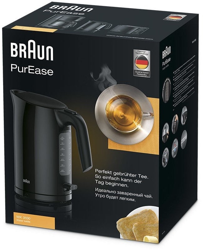 Braun PurEase WK 3100 BK, 1,7 l, 2200 W, Zwart, Waterniveau-indicator, Oververhittingsbeveiliging, Draadloos