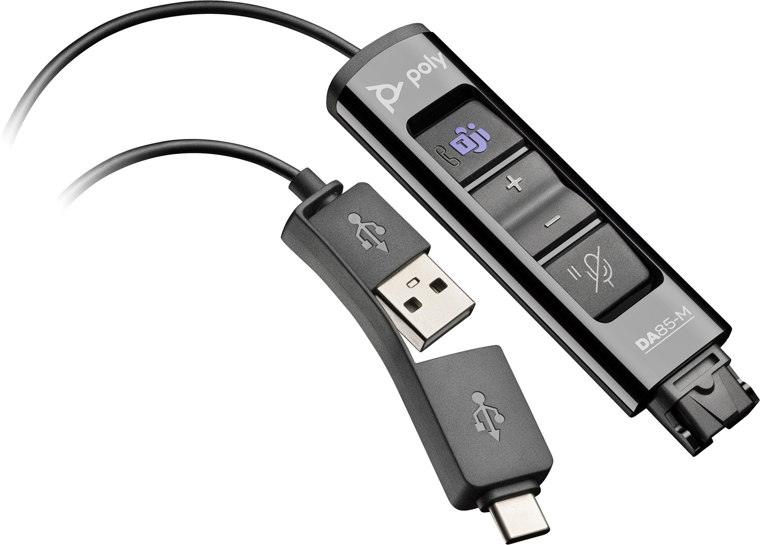 Met digitale adapters uit de Poly DA-serie klinken callcentermedewerkers glashelder, of ze nu thuis of op kantoor werken. Dankzij eenvoudige USB-A- of USB Type-C-aansluitingen wordt het geluid aangepast aan elke specifieke Poly-headset zodat je thuis en op kantoor hoogwaardige gesprekken kunt voeren [1].