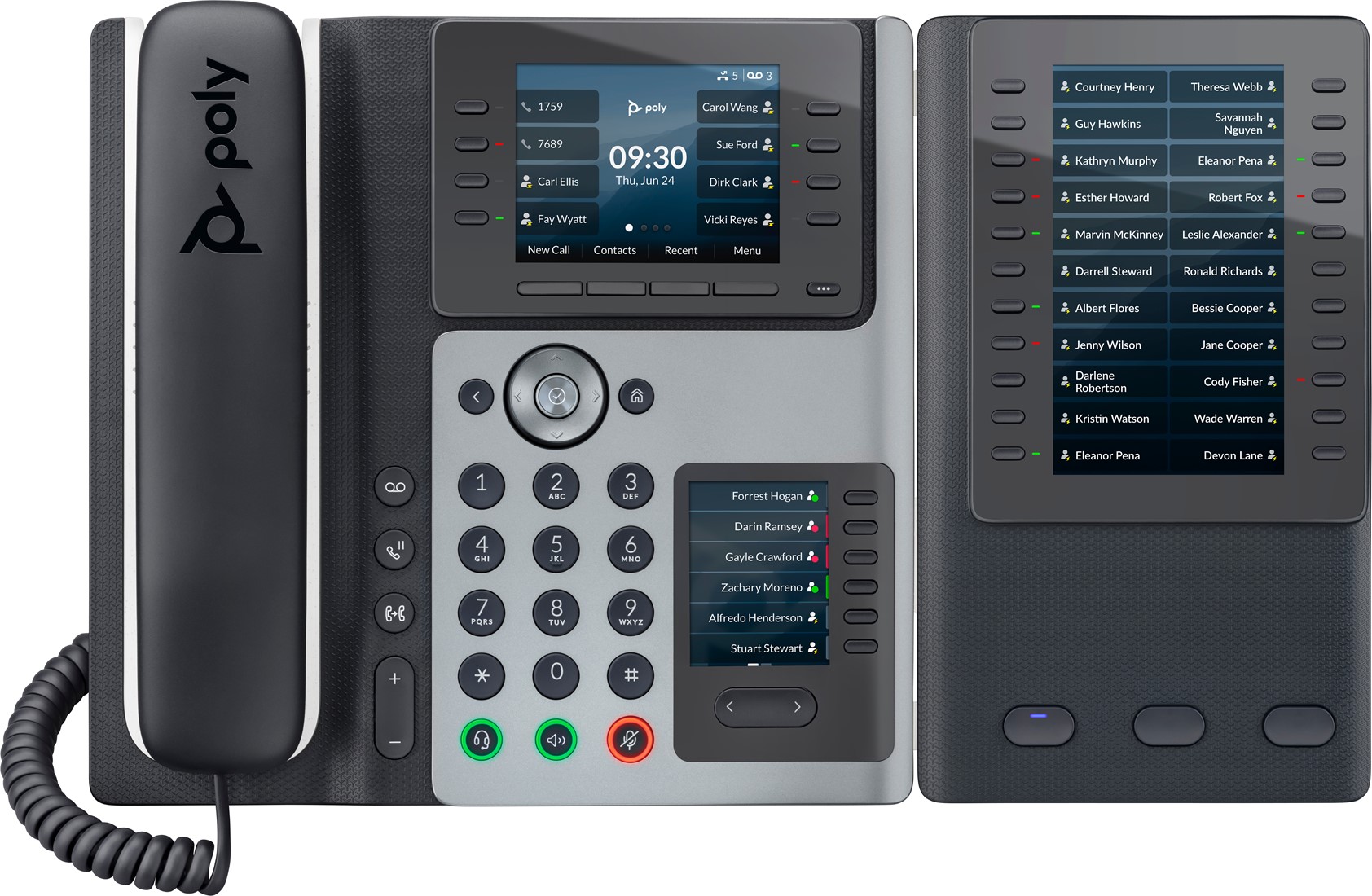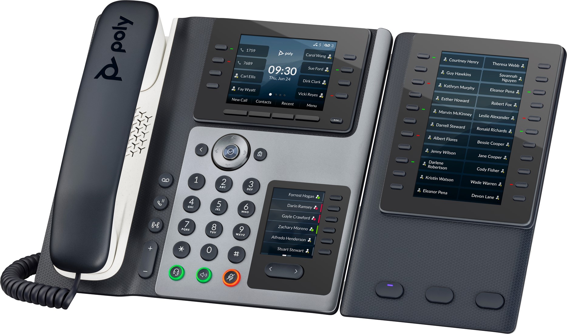 Deze deskphone maakt hybride werken eenvoudig. Deze telefoons zijn ontworpen voor flexibele werkplekken en thuiskantoren en bieden de perfecte gebruikerservaring. De fraai vormgegeven telefoon biedt hoogwaardige audio en heeft twee displays en 14 lijntoetsen zodat je optimaal kunt werken.