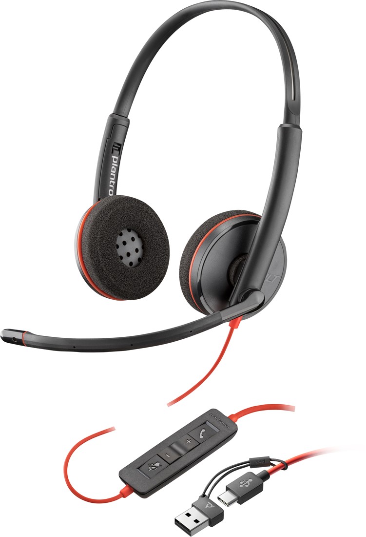 HP Poly Blackwire 3220 Stereo USB-C Headset + USB-C/A adapter