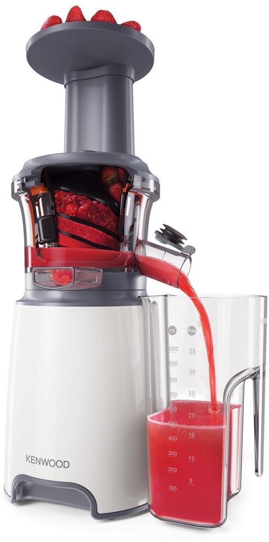 Kenwood PureJuice JMP600WH, Slowjuicer, Grijs, Doorschijnend, Wit, 60 RPM, 1,3 l, 1 l, Verticale auger