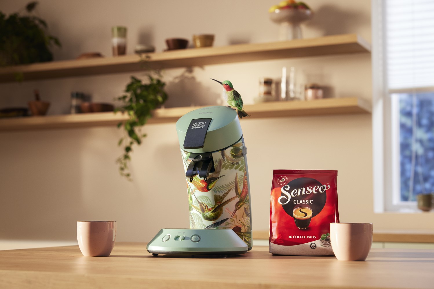 Dit nieuwe SENSEO®-koffiezetapparaat met uniek en handgemaakt vrolijk design is het resultaat van een unieke samenwerking tussen beide merken. Het past in elke keuken en is een absolute must-have voor de echte koffieliefhebber. Het apparaat wordt geleverd met 2 Dutch Design-koffiekopjes ter waarde van € 17,-.