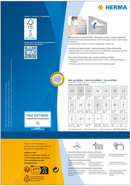 Zeer goede drukresultaten op alle laser- en inkjetprinters, kopieerapparaten, kleurenlaserprinters en kleurenkopieerapparaten.