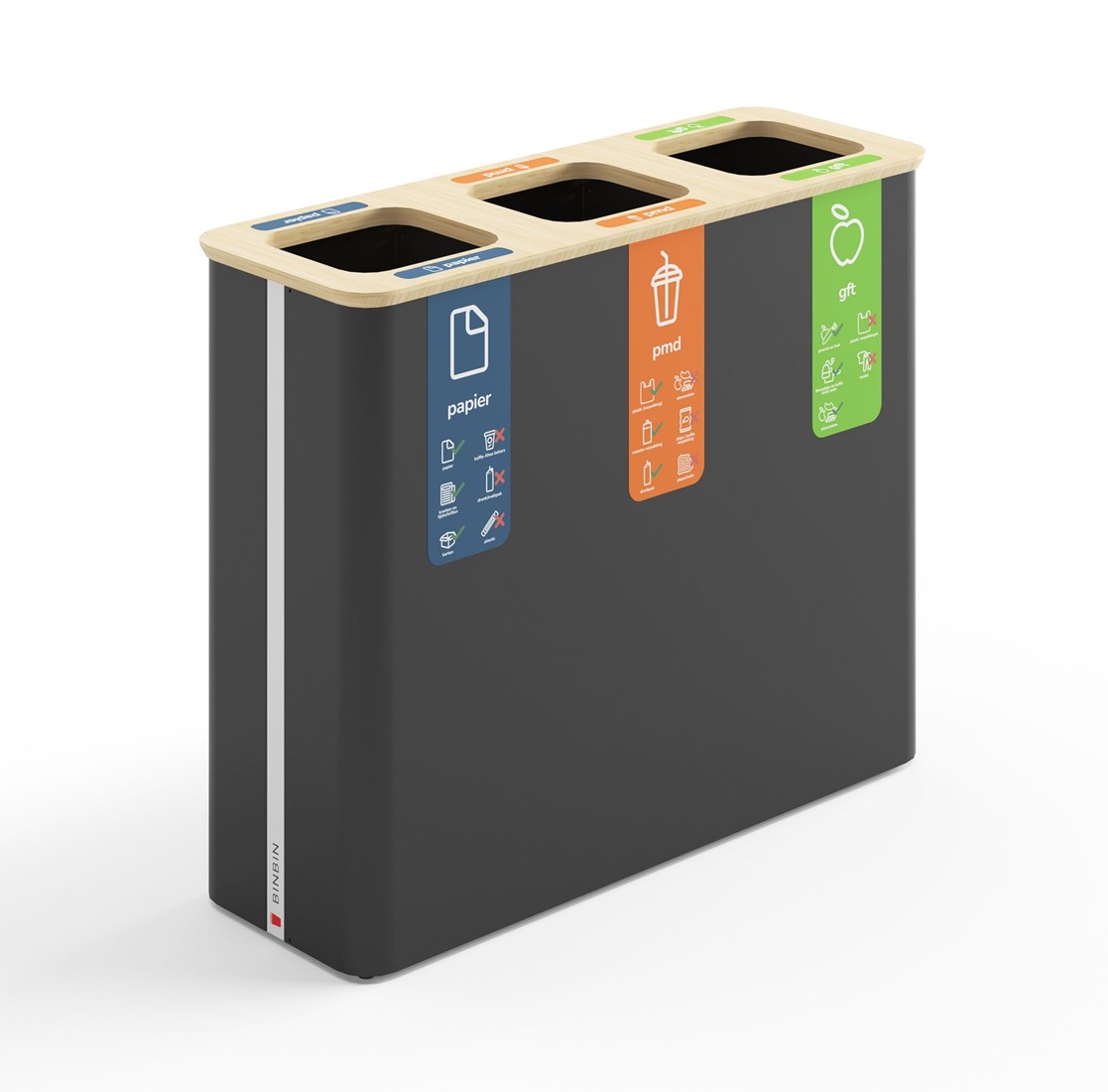 Afvalscheidingsbak Globular 3x60 ltr zwart/bamboe