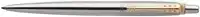De Parker Jotter Stainless steel balpen heeft een vakkundig vervaardigde rvs body, gecomplementeerd met een vergulde pijlpuntclip.