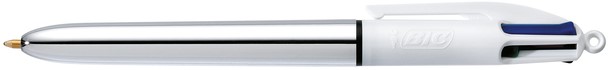 Bic 4 kleuren balpen Shine heeft een zilveren body.