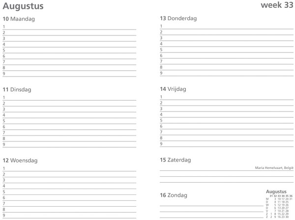 Ryam Studie agenda, met 1 week per 2 pagina’s, 12 maanden van augustus tot en met juli.