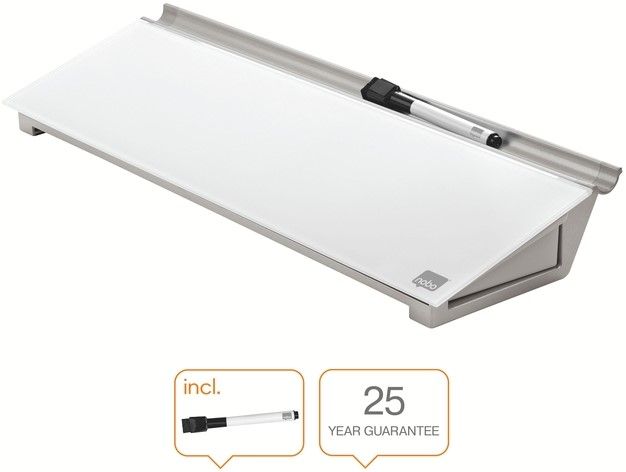 Dit desktop glasbord past perfect tussen je toetsenbord en monitor, zodat je gemakkelijk aantekeningen kunt maken.