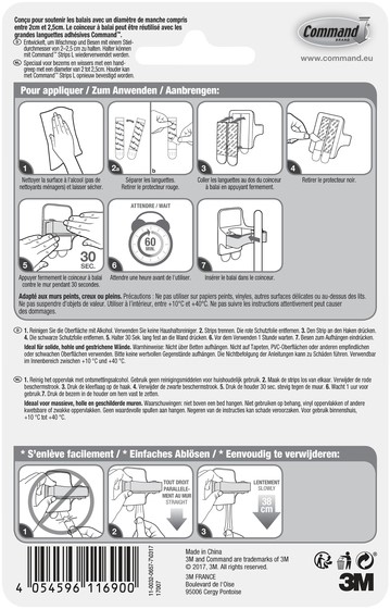 De Command™ Bezemhouder is onze innovatieve oplossing voor het opbergen van bezems en vloerwissers als die niet in gebruik zijn. Ze hechten sterk en laten na verwijdering geen sporen achter dankzij de 3M rekontgrendelingstechnologie.