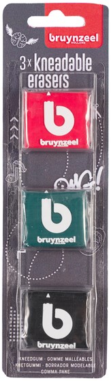 De kleurige kneedgummen van Bruynzeel zijn onmisbaar in je schooletui en nu heb je ze gelijk in drie verschillende kleuren!