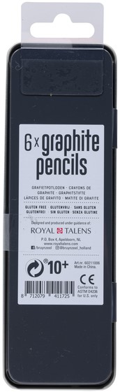 De verpakking bevat 6 potloden in de volgende hardheden: 2H, 1H, HB, 1B, 2B en 4B.