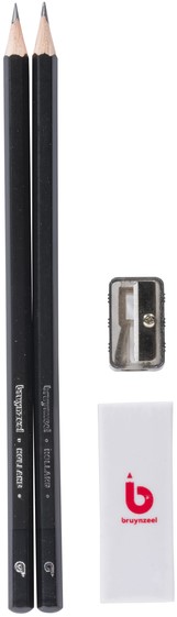 Grafietpotlood Bruynzeel Teens HB met puntenslijper en gum set à 4 delen