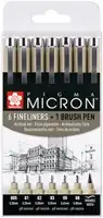 Fineliner Sakura Pigma Micron set à 6 schrijfbreedtes met brushpen zwart