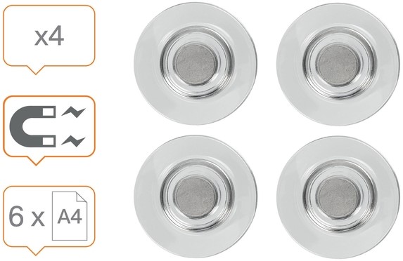 Pak van 4 magneten. Waarschuwing: Dit product bevat magneten van hoge sterkte. De magneten zijn geen speelgoed en moeten buiten het bereik van kinderen worden gehouden. Houd magneten uit de buurt van medische apparatuur om interferentie te voorkomen.