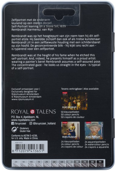 Grafietpotlood Bruynzeel Rijksmuseum Rembrandt van Rijn blik à 12 hardheden grijs