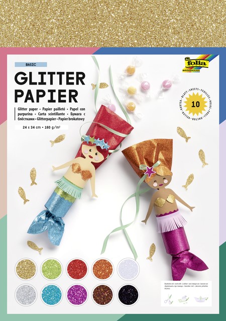 Glitterpapier Folia 1-zijdig 24x34cm 170gr 10 vel assorti