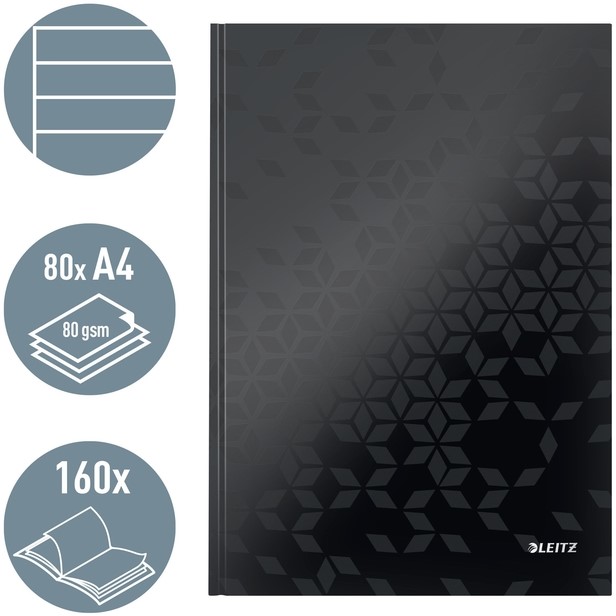 Notitieboek Leitz WOW A4 160blz 90gr lijn wit