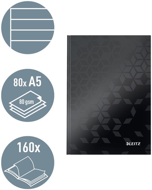 Notitieboek Leitz WOW A5 160blz 90gr lijn ijsblauw