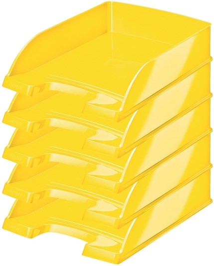 Geef uw bureau een WOW metamorfose. Opvallende, premium kwaliteit Leitz brievenbak uit de stijlvolle WOW serie in de kleur geel met een glanzende afwerking. Deze robuuste brievenbak past perfect bij de andere Leitz WOW producten.