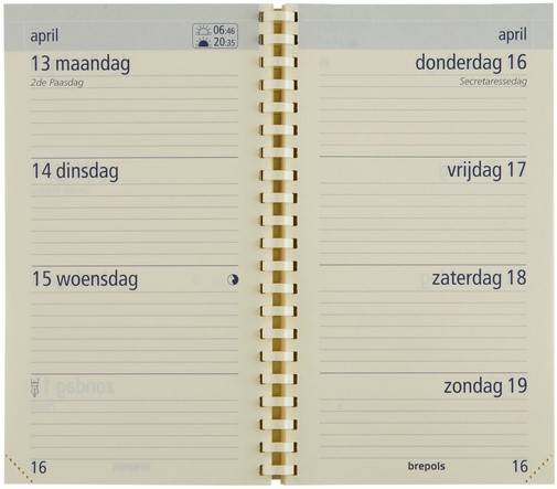 Brepols agenda Optivision pocket Trento Nederlandstalig met 1 week op 2 pagina's en een optimale leesbaarheid.